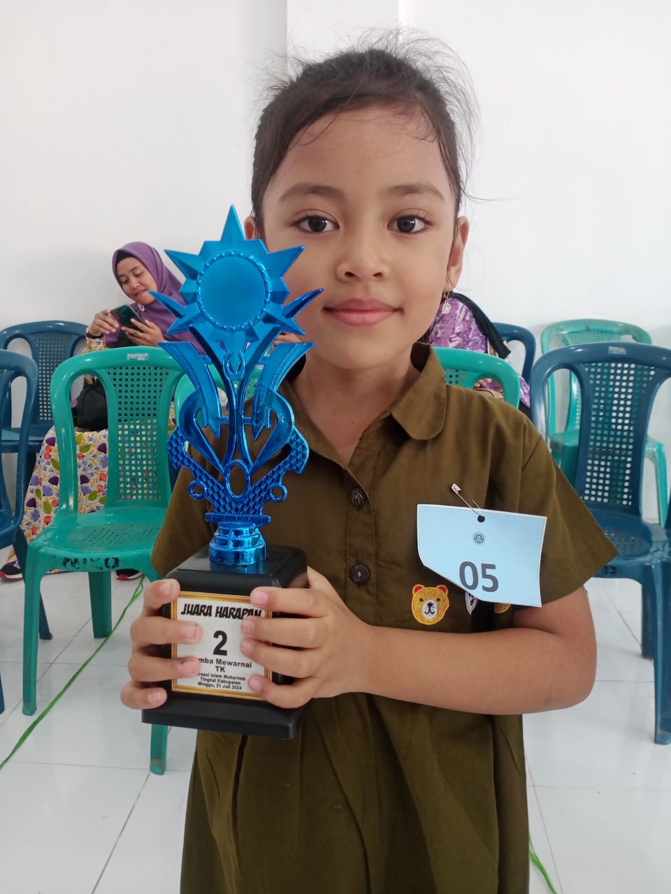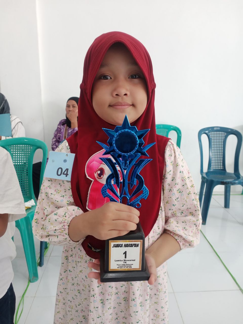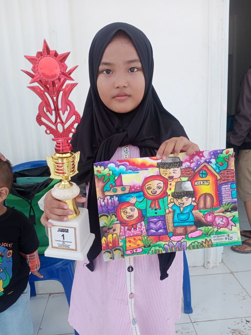 Tak kalah membanggakan, Salsabila Mikayla Waluyo juga berhasil meraih juara 1 dalam kategori Mewarnai. Dengan kreativitas dan ketelitian yang luar biasa, Salsabila mampu menghasilkan karya yang memukau sehingga layak menjadi yang terbaik.